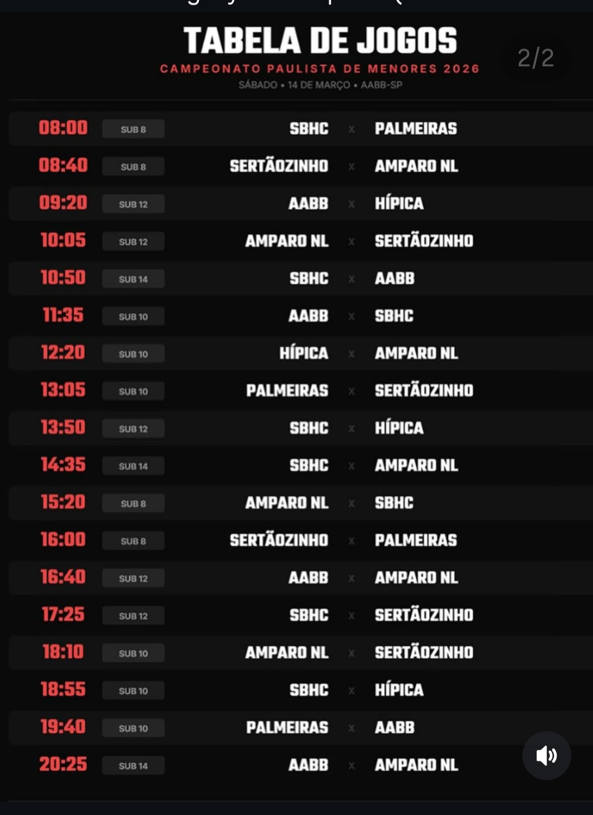 | Sub-14 | 17h às 19h | Quarta e sexta | Nascidos até 2010 | Alan Kenji |